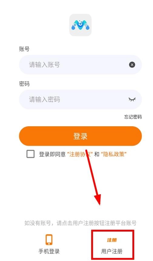 点击下面的用户注册