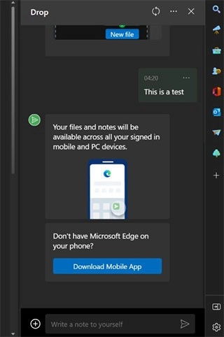 3、当测试发布一条文本消息后,所有其他安装了Edge浏览器且支持该功能的设备,无论是桌面端还是手机端,均能够收到这条消息,且会有通知提示。