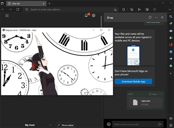 4、另外,Drop能够共享大多数格式的文件内容。举例来说,外媒上传了一款名为“MPV播放器”(mpv.exe)的应用,在另一台设备上安装该播放器后,就能够正常播放视频。