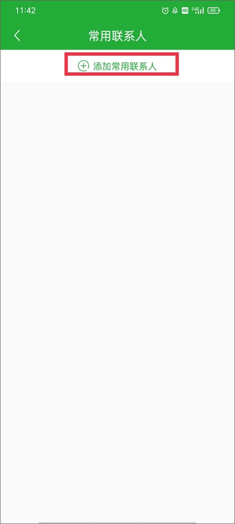 2、在这个常用联系人界面,会呈现出你此前添加的全部常用联系人信息列表,点击红色框内的“+添加常用联系人”按钮。
