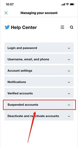 5、点击「关于封禁账号About suspended accounts」