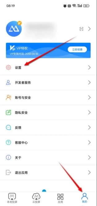 进入傲软投屏,在“我的”页面中,点击“设置”的小齿轮图标即可进入相关设置界面。
