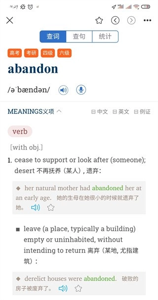 1. 通过应用,能够查阅到所有词汇的内容与信息。
