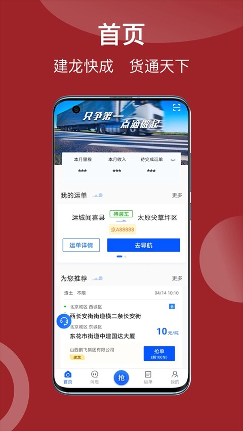 建龙快成司机,这是一款专门为货车司机打造的线上接单软件。它具备海量的货运资源,司机不仅能够查看运单列表,还能实时把控运输动态。不仅如此,该软件对于车队管理也大有益处,能够助力车队强化管理,进一步优化车货匹配程度。要是你对这款软件有需要,欢迎在本站一键开启体验之旅。