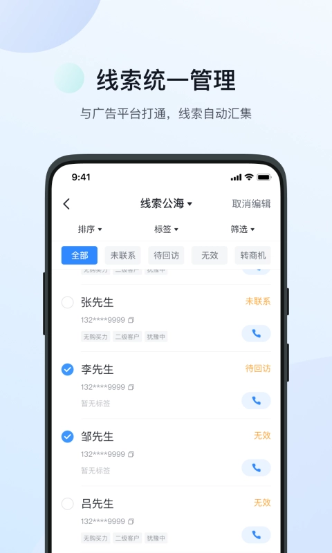 1. 采用一站式线索管理模式,有效提升跟进效率