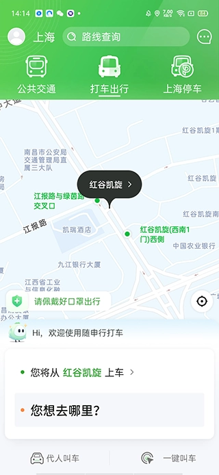 2、打车出行功能:具备一键叫车、代人叫车的便捷操作,同时提供隐私号保护、行程语音保护等安全措施,还能设置紧急联系人。
