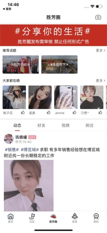 2、此外,这里还设有胜芳本地社区,涵盖企业供求、顺风车、本地服务等各类社区圈子。