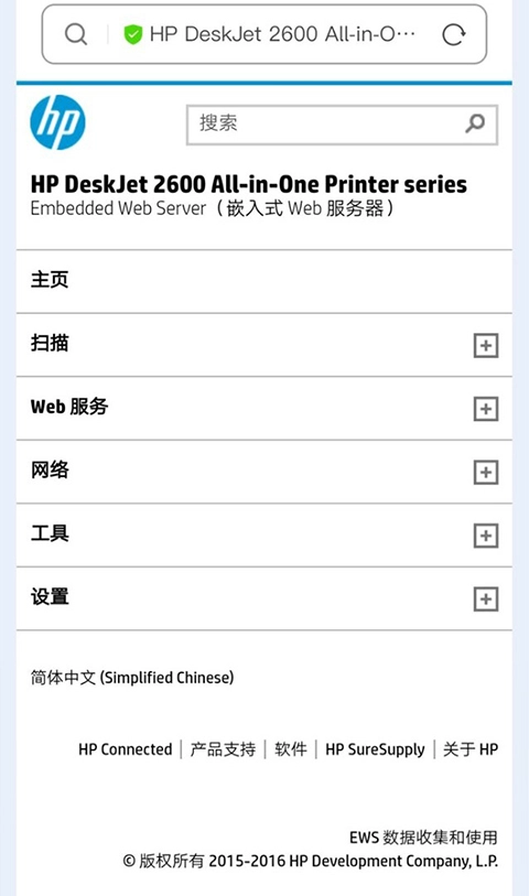5、进入打印机配置页面(不同打印机的页面也会有差别,小编的例子是惠普)。