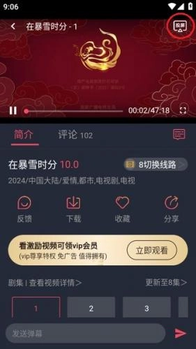 2. 找到准备投屏的视频并打开,接着点击视频界面右上角的“投屏”按键。