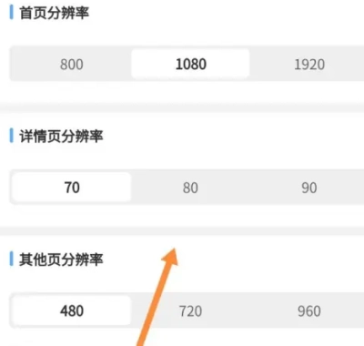 3、如图所示,能够依据自身需求对首页分辨率、详情页分辨率以及其他页分辨率进行设置。