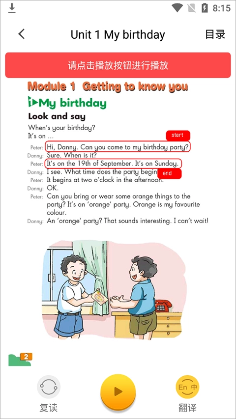 8、随后点击位于中间位置的播放按钮,便能开始跟读。