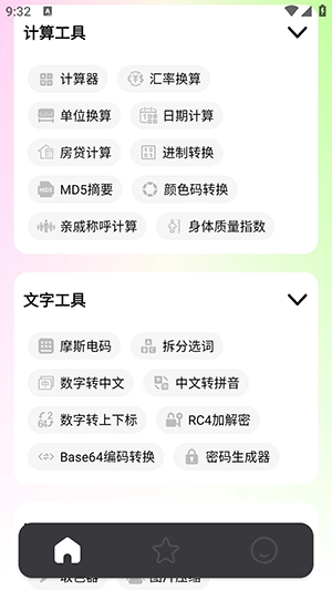 刀锋工具箱是一款功能极为丰富的工具箱软件。它既能助力用户查询各类数据,又能凭借其中的工具解决生活中碰到的各种小问题,进而提升你的日常生活品质。软件内的工具都做了分类,为方便用户查找,还配备了各种实用的搜索功能,便于快速找到所需工具。你无需担忧工具太过复杂不会操作,因为每种工具都有详尽的使用教程,助你轻松上手。若你有相关需求,这款应用绝对能满足你日常生活中的各类处理工作。