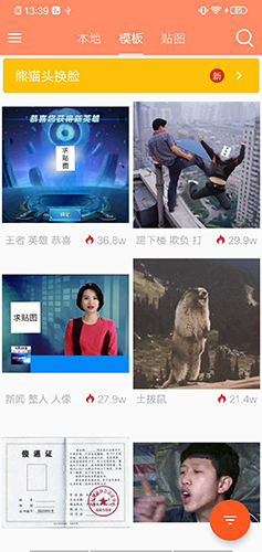 3、【表情模板】提供许多表情模板,制作专属于您的搞笑表情