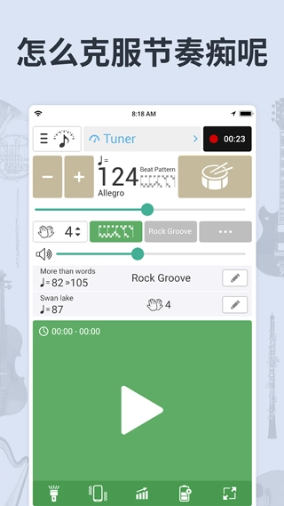 轻点播放键,节拍器便会开启打节奏。