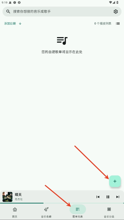 1、在歌单列表中点击“+”
