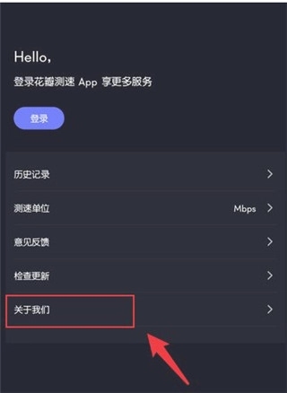 2、在“关于我们”页面中,点击【停止“花瓣测速”服务】,具体位置如图所示。