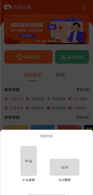 2. 挑选你制作动画所需的屏幕比例;