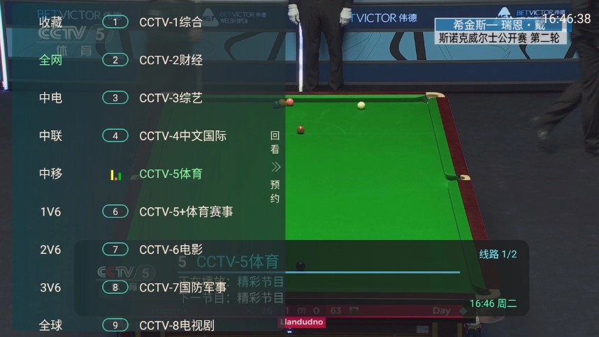 2. 选中特定频道后,点击“ok”键,直播将自动开启。