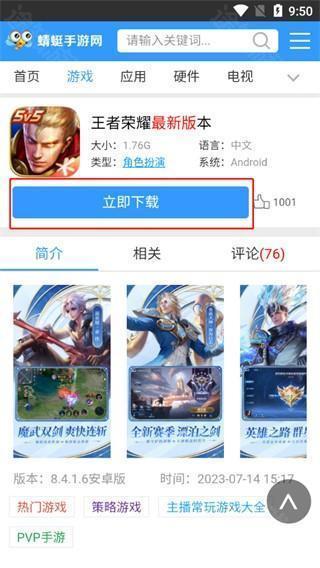4、在此以《王者荣耀》为例,寻找到自己想要游玩的版本。