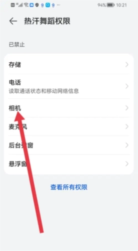 8、进入相机权限,然后把【仅使用期间允许】的按钮开启即可。