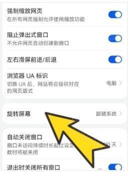 2. 当进入浏览设置界面之后,寻找到旋转屏幕选项并点击它。