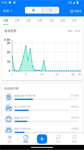 3、查看图标,以知晓个人每日消费的具体变动状况。