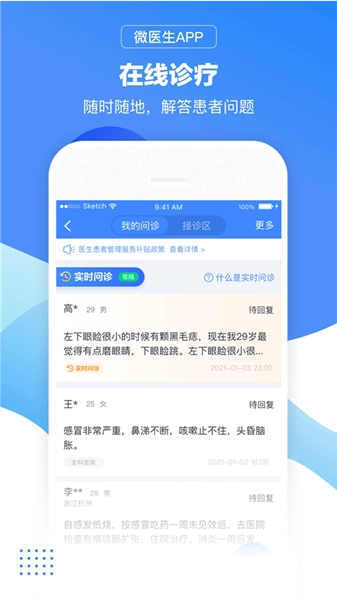为患者在线提供图文、电话以及视频问诊等服务。
