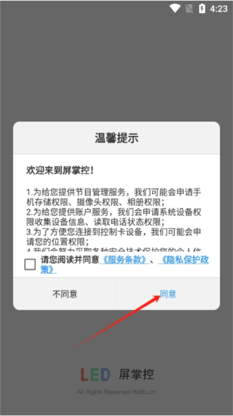 2. 进入之后,阅读并同意屏掌控的用户协议。