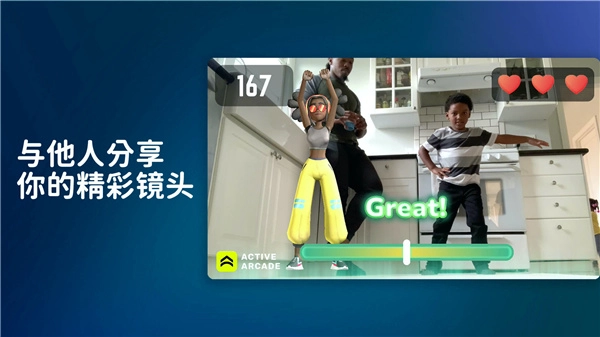活力街是一款非常好用的运动健身软件,它支持切换成自己想要的场景,让客厅瞬间变成家庭健身房,而且软件中的所有健身项目都是通过互动游戏的方式,让你既可以玩游戏也可以健身,两者互不耽误,它可以随时随地为您提供运动的自由,让你在游戏中也能锻炼身体,你只需要跟着屏幕动作跟着做即可就是你想要运动的场景,而且非常适合与家人一起享受游戏乐趣,还支持与其他玩家进行多样化的运动挑战,没有年龄性别的限制,所有的用户在这里都可以轻松的找到自己喜欢的运动和游戏,快来试试吧!