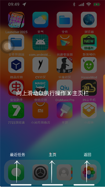 4、随后便能够看到ilauncher桌面的功能界面以及手势指引。
