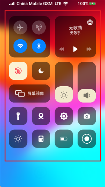 向上滑动屏幕,即可呼出 iOS 风格的控制中心,在此能快速设置手电筒、蓝牙、WiFi、信号、音量、亮度、屏幕旋转等常用功能。