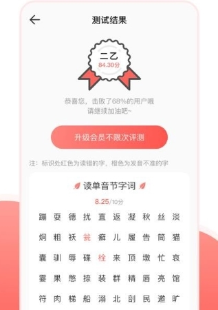 自动保存个人模拟检测成绩,明确个人当前所处的普通话等级。