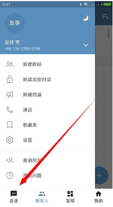 1、首先打开软件,然后点击下方的“会话”。