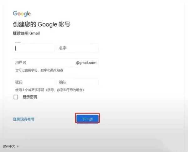 3、信息填写页面,我们按真实信息填写即可,账号名和密码填写记得住的,填写完后,点击下一步。