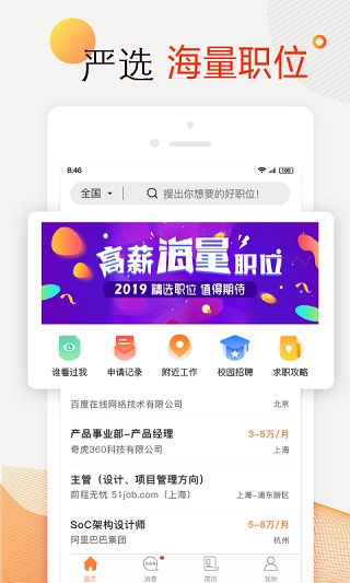 3、前程无忧安装最新支持大量招聘信息,强大的网络搜索能力。