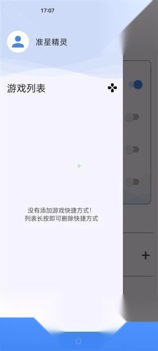 3、接着点击主页左上角的『≡』符号,开启侧滑界面,随后点击侧滑工具栏右侧的加号,把你最喜爱的游戏添加进来,使其进入游戏快捷启动方式列表。除此之外,还能够添加第二个、第三个、第四个等游戏。完成添加后返回主页面,打开准星,接着再次打开侧滑,点击相应游戏就能开始游玩。