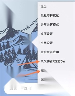 2、背景为手机系统壁纸,其上的图标是已分身的软件。初始状态下,这里什么都没有,需点击右下角的菜单按钮,选择克隆App,或者从文件管理器进行安装。