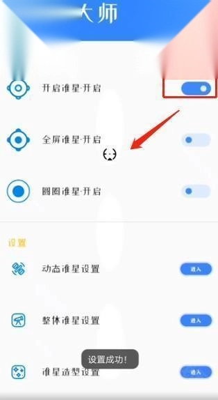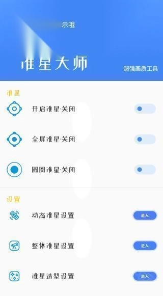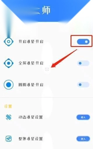 1. 打开准星大师,点击如下图所示的位置,就能开启准星。