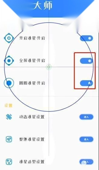 4、在使用过程中,建议开启全屏准星与圆圈准星,如此能取得更佳效果。