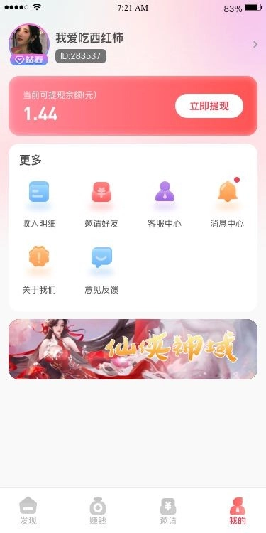 2、邀请好友一起玩游戏,根据达人等级,每位好友可为你带来3 - 9元的现金奖励,邀请越多,奖励越多。