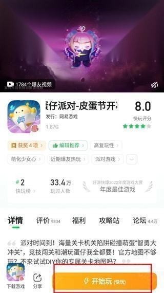 3、进入好游快玩频道,找到你想体验的游戏,点击进入该游戏页面,再点击“开始玩(快玩)”,就能快速体验游戏。