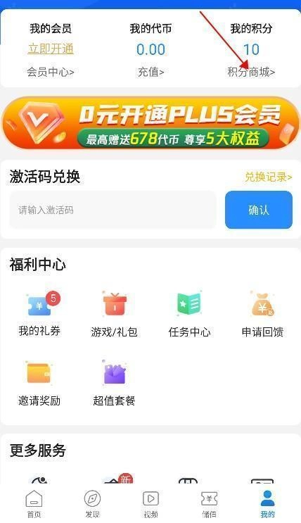 4、轻点积分商城,凭借积分来兑换代金券。