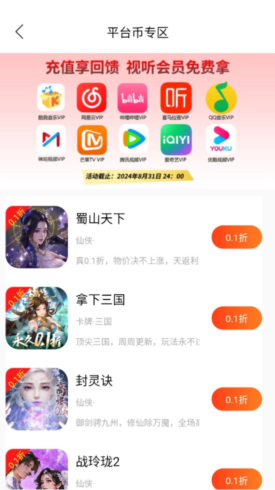 1、推出充值折扣与福利礼包,让您能享受超低价的充值折扣。