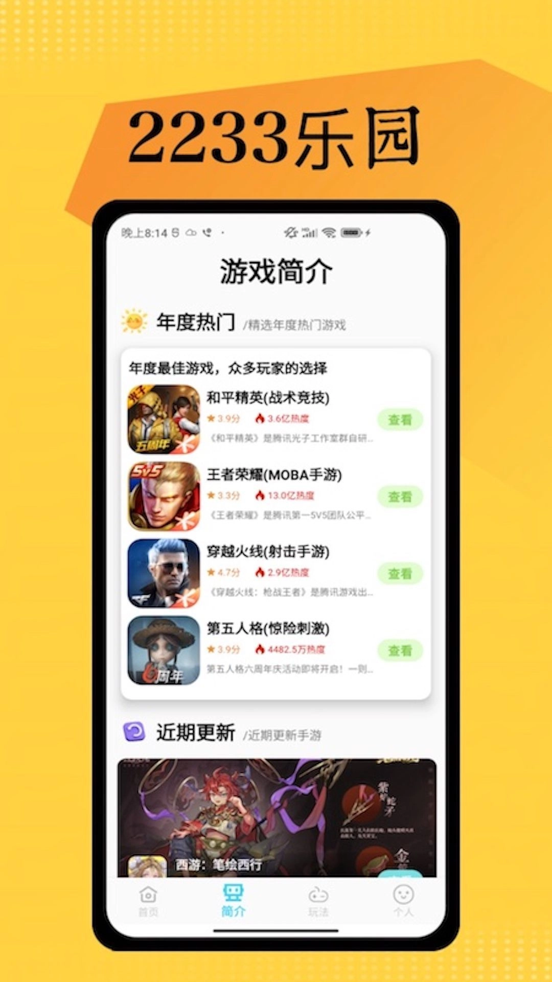 《2233开心玩》软件提供海量的游戏资源,这些资源都有详细的分类以及介绍,用户可以轻松的找到喜欢的游戏,所有的游戏都是免费为用户提供的,并且都经过严格的检测,保证都是无毒无害的,可以放心,随时随地的畅玩,软件中还设置了排行榜的功能,用户可以清楚的了解到当下最热门的游戏信息,感兴趣的用户欢迎尝试。