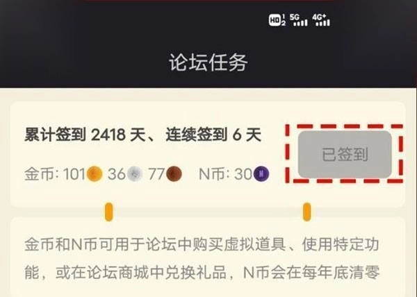 1. 进入后,点击屏幕顶端的“签到”按钮。