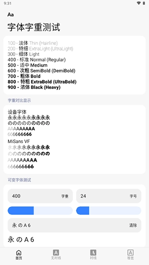 1、此功能专门用于测试字体的粗细程度,助力用户精确挑选适配的字体样式进行使用。