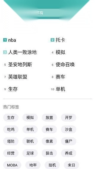 2、来到搜索查询界面,能够依据热门标签来寻找心仪的游戏类型。
