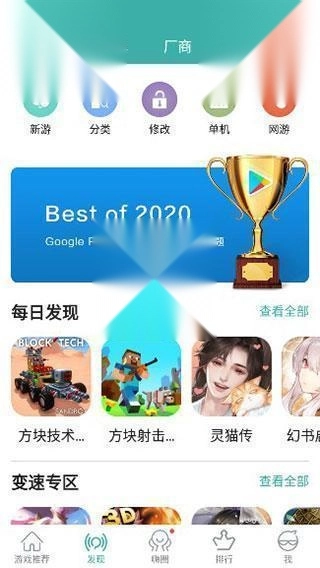 3、发现界面里包含众多新游、分类游戏以及游戏专题。