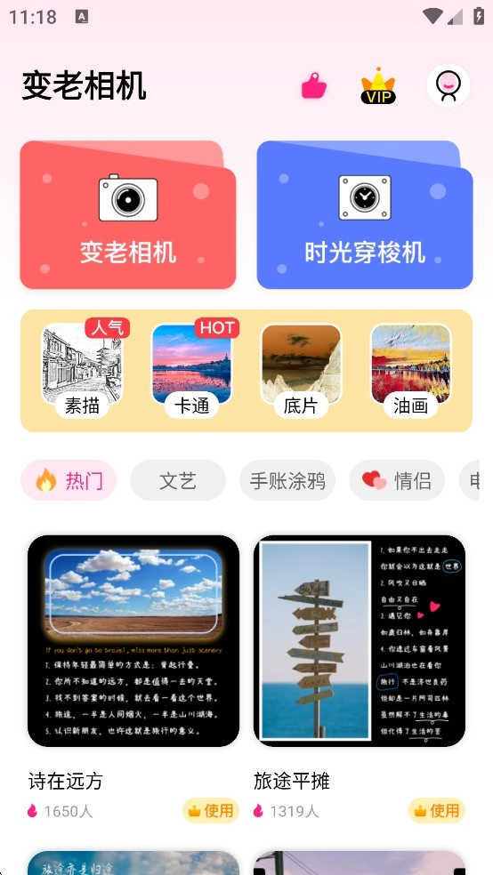 2、如图所示,在首页能够选择变老相机、时光穿梭机等功能。