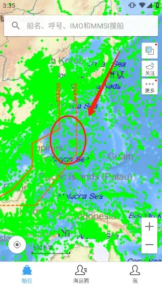 3、接着在顶部用于搜索船舶信息的地方,把地图放大。